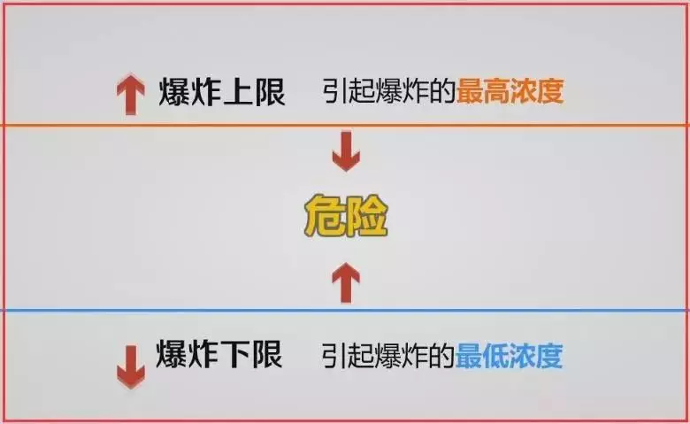 ②爆炸極限也稱爆炸濃度極限,是指可燃物質(zhì)(可燃?xì)怏w、蒸氣和粉塵)與空氣(或氧氣)必須在一定的濃度范圍內(nèi)均勻混合,形成預(yù)混氣,遇著火源才會(huì)發(fā)生爆炸,這個(gè)濃度范圍。