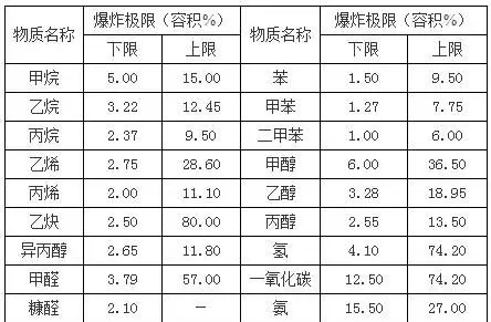 ③常見(jiàn)物質(zhì)的爆炸極限如下,僅供參考: