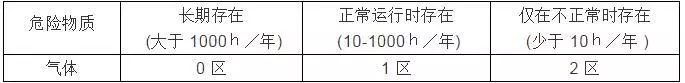 0區(qū):爆炸性氣體環(huán)境連續(xù)出現(xiàn)或長(zhǎng)時(shí)間存在的場(chǎng)所。