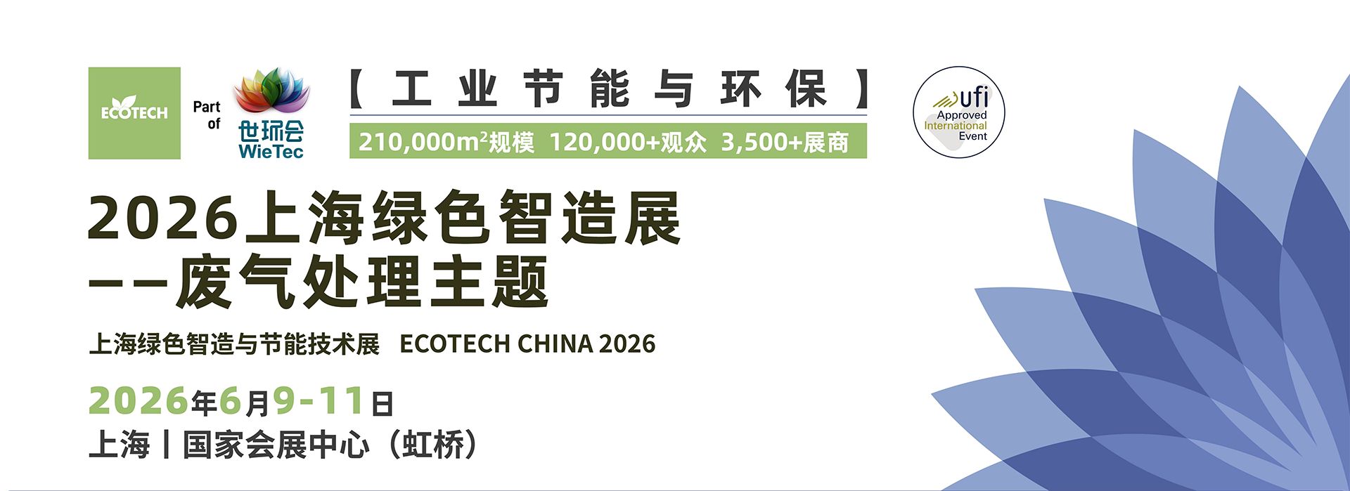 上海綠色智造展——廢氣處理主題展區將于2026年6月9-11日在上海|國家會展中心(虹橋)盛大啟幕。2026年展會規模預計將達到20,000平米,吸引600多家品牌企業參展,匯聚30,000+來自電子、半導體、新能源、石化、化工、制藥、鋼鐵、冶金、涂裝等領域及環保領域的專業用戶,為參展企業搭建“技術展示+政策解讀+商業對接”的一站式交流平臺。
